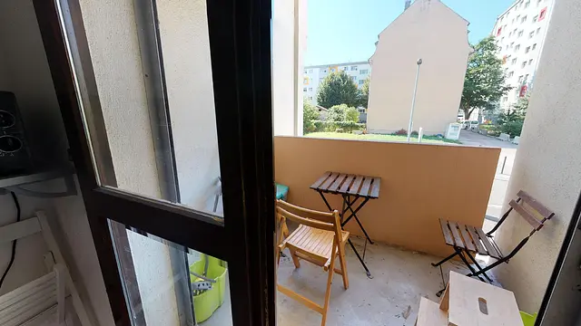 L'appartement comporte 3 chambres et un espace de vie dans la cuisine avec table à manger, et accès sur un balcon agréable. Le balcon est aménagé avec une petite table, idéal pour les jours d'été.