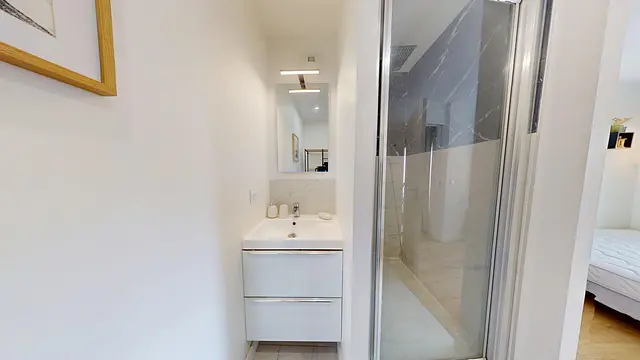 Trois chambres bénéficient d’une salle d'eau privative (douche, meuble vasque avec miroir).