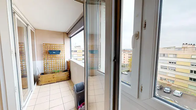 Le plus : un balcon offrant une vue dégagée est accessible depuis la pièce de vie de la colocation !
