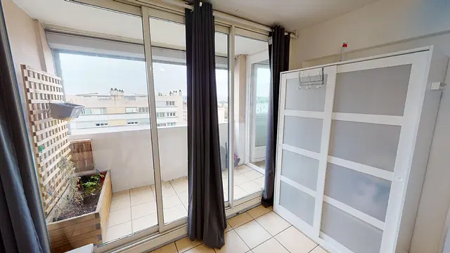 Le plus : un balcon offrant une vue dégagée est accessible depuis la pièce de vie de la colocation !