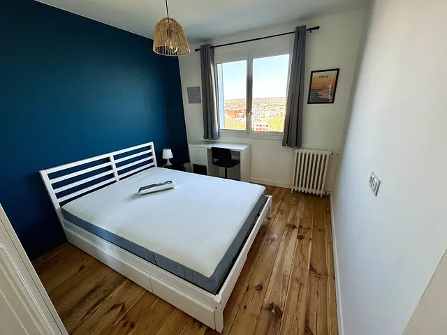 Il présente une décoration soignée et dispose de mobilier ainsi que d’électroménager neufs, offrant un cadre idéal pour une colocation à la fois confortable et conviviale. En prime, vous profiterez d’une vue dégagée exceptionnelle sur la ville.