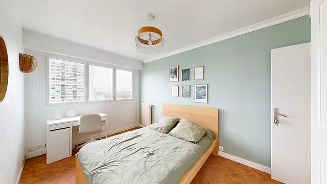 Cette colocation de 3 chambres s'ouvre sur un couloir spacieux accueillant un grand placard mural.