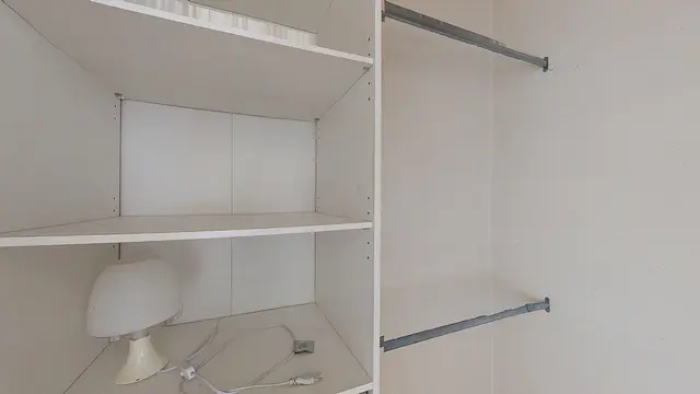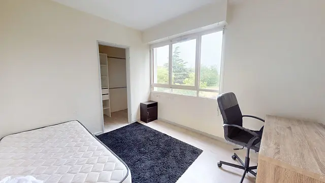 Elle est équipée d'un lit simple, table de chevet et bureau.