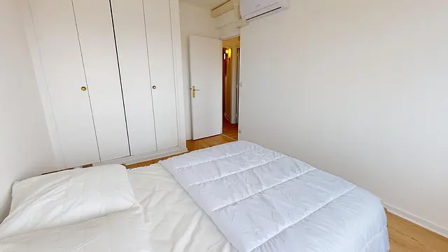 La 3ème chambre de cette colocation possède un lit double, bureau et placard de rangement.
