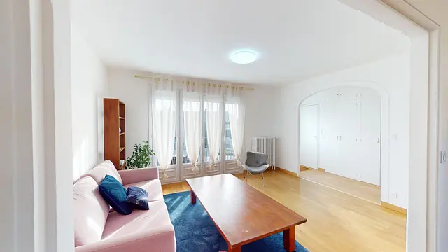 La salle de bain dispose d’une baignoire, idéale pour un moment de détente, ainsi que d’un meuble vasque avec miroir et rangements. Un sèche-serviette est également présent pour plus de confort. Et pour une meilleure organisation de la vie en colocation, les toilettes sont séparées.