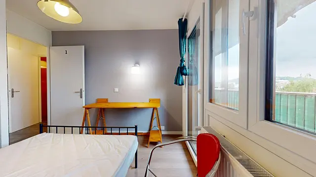 Un balcon partagé entre les colocataires permet de profiter d’un espace extérieur agréable et ensoleillé.