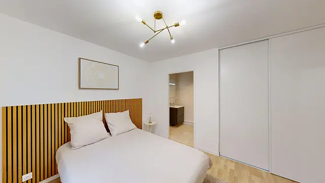 Le logement se compose de quatre chambres spacieuses, toutes meublées avec soin. L’une d’entre elles bénéficie du privilège d'une salle de bain privative, offrant une indépendance totale. Les trois autres chambres se partagent une seconde salle de bain moderne et fonctionnelle. Chaque pièce est optimisée pour le repos et la productivité, intégrant un lit confortable, un espace bureau dédié et un dressing généreux. Situé à proximité immédiate des transports et des commerces de Villejuif, cet appartement est le lieu idéal pour ceux qui recherchent le prestige du neuf sans aucun compromis.