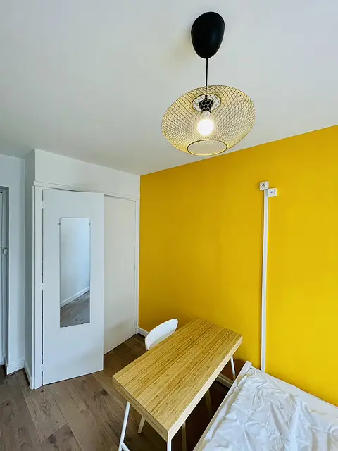 Cette colocation de trois chambres s'ouvre sur une entrée avec un placard mural.