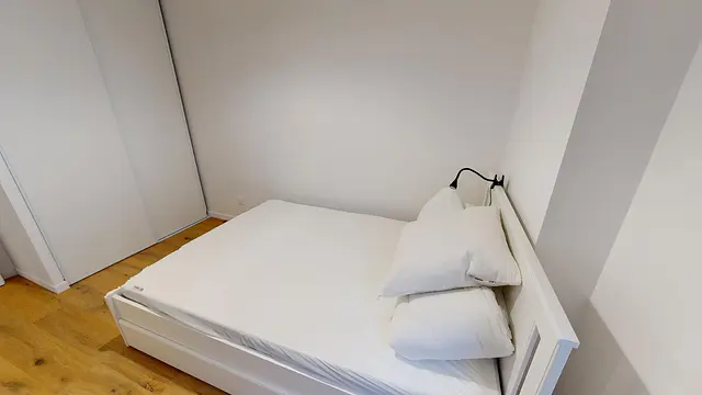 La chambre 1 est aménagée avec tous le nécessaire : lit double, bureau, chaise et placard de rangements intégrés.