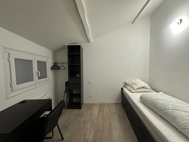- - D'une pièce principale, équipée d'un lit double, d'un bureau, d'une chaise, d'une penderie avec étagères, d'une kitchenette (four à micro-ondes, réfrigérateur, évier, plaques de cuisson)