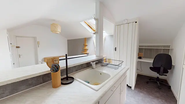 💼 Un espace bureau est aménagé dans une alcôve attenante à la cuisine, idéal pour le télétravail ou les études.