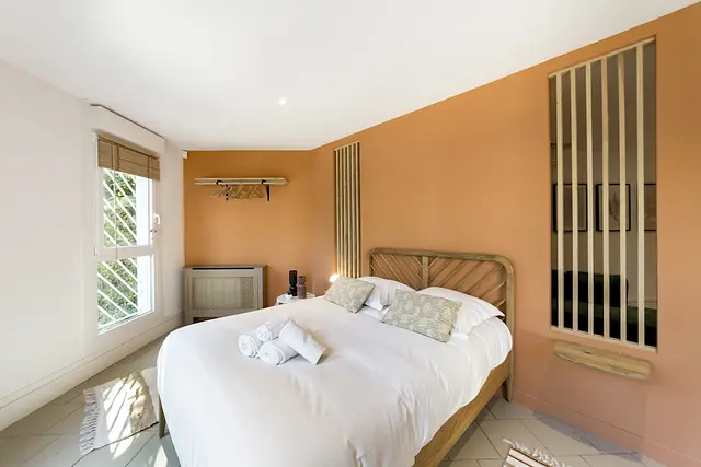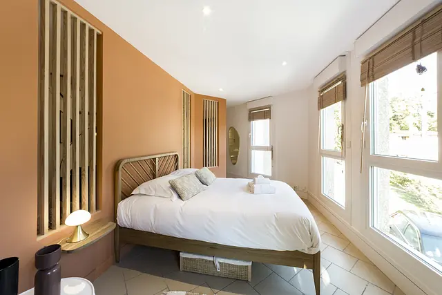 La chambre quant à elle est séparée de cet espace de vie. La chambre est aménagée avec un lit double et une penderie. Cette chambre est très lumineuse grâce à ses 3 grandes fenêtres!