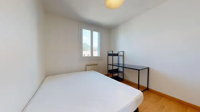 Cette colocation comporte donc 4 chambres toutes entièrement équipées et fonctionnelles avec lit double, bureau, chaise et placard de rangements.