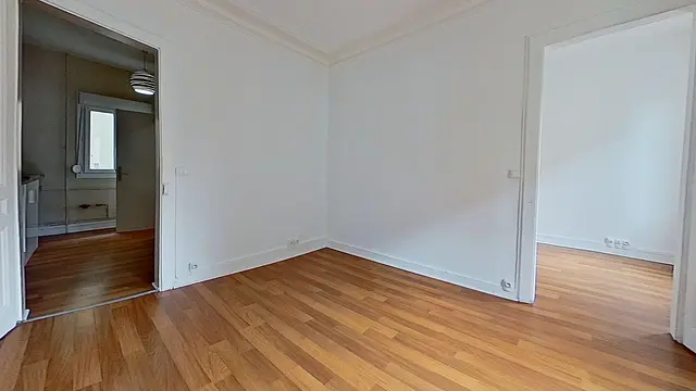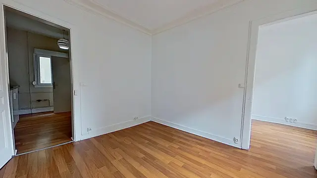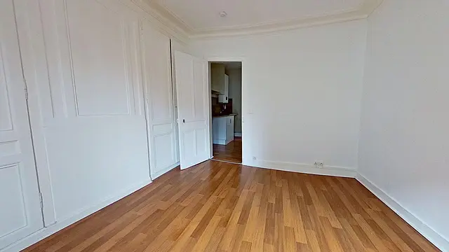 Cet appartement s'ouvre sur une entrée, puis dessert sur un séjour qui dispose de grands placards à rangements.