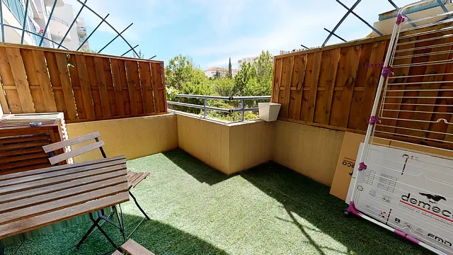 Le plus de cette pièce : les grandes baies vitrées s’ouvre sur un grand et confortable balcon aménagé avec table et chaise !