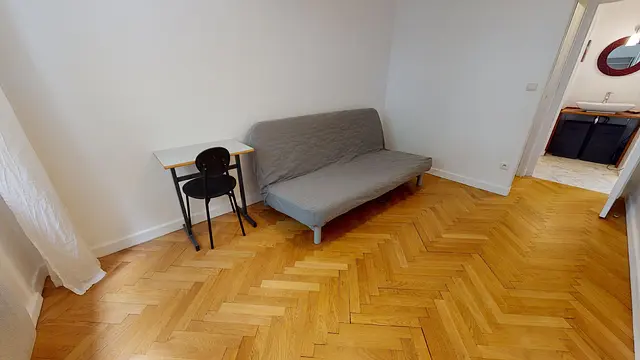 Ce T3 se compose donc de 2 chambres. La chambre 1 située au fond à gauche se compose d’un canapé lit, d’une table, d’étagères et d’un grand placard, type dressing, idéal pour ranger ces affaires. La chambre 2 quant à elle est aménagée avec un lit double, des étagères de rangements et une commode.