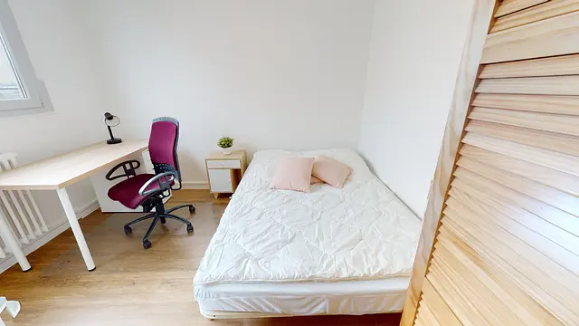Ce T3 comporte donc 2 chambres entièrement équipées et fonctionnelles : lits double, bureaux, chaises et rangements.