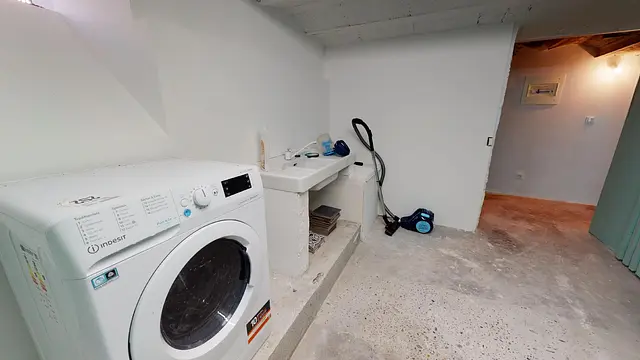 - une buanderie avec un lave-linge/ sèche-linge, une table à repasser, un évier, etc