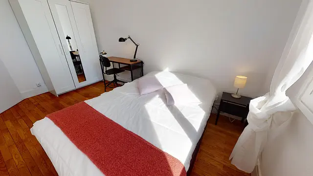 L’appartement se compose donc de 3 chambres de 10 à 12m2 toutes totalement équipées et aménagées avec un lit double, un bureau, une chaise et des grands placards.