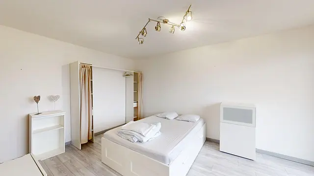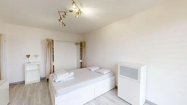 La chambre est meublée d’un lit double avec tiroir, d’un placard et de plusieurs commodes pour ranger aisément vos effets personnels.