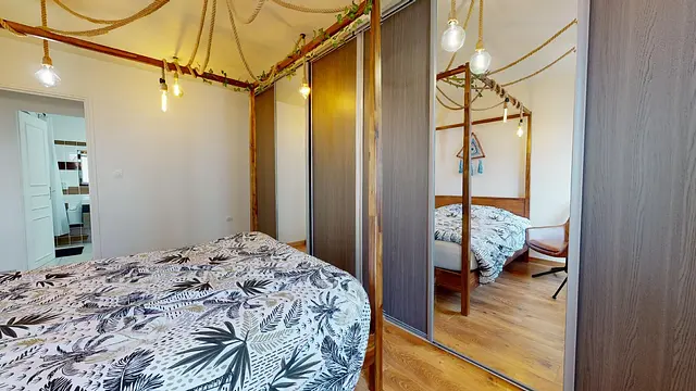 Les 2 chambres sont respectivement meublées avec lit double et rangements. Une des chambres possède un très dressing pour pouvoir ranger toutes vos affaires.