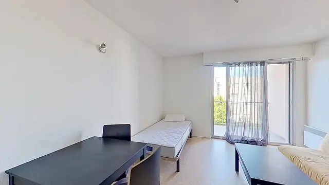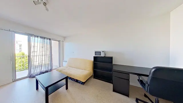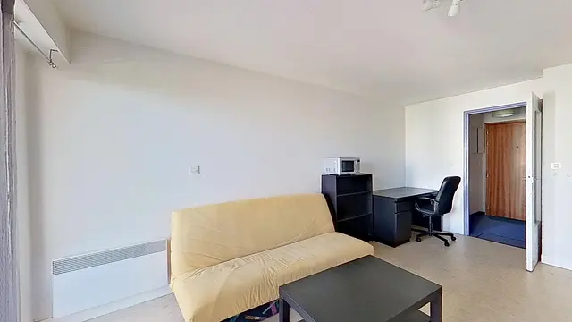 Situé au deuxième étage d’une résidence étudiante avec ascenseur, ce studio bénéficie d’un petit balcon, idéal pour profiter de l’extérieur et apporter de la lumière à la pièce.