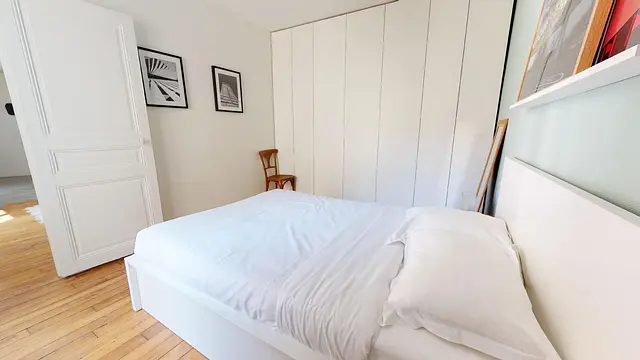 Ce T2 se compose donc d’une chambre totalement équipée et aménagée avec un lit double coffre (avec rangements), des tables de nuit et un grand placard mural intégré, idéal pour ranger ses affaires !