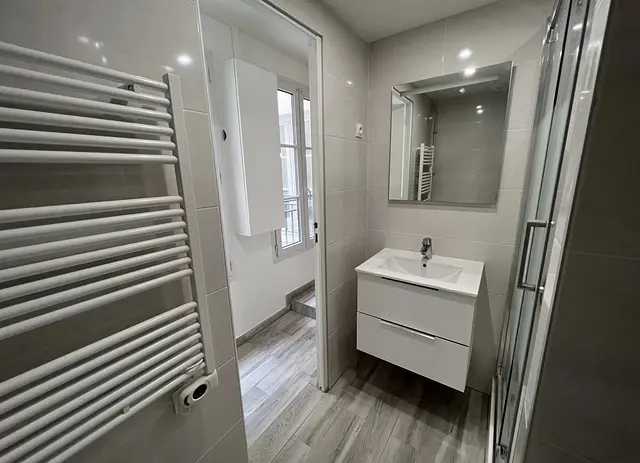 Magnifique studio situé au 2ème étage d'un immeuble entièrement rénové avec ascenseur, grand studio sur cour comprenant: entrée, pièce principale avec cuisine équipée (micro onde, plaques de cuisson, réfrigérateur, lave-vaisselle, vaisselle), salle d'eau avec wc. Chauffage et production eau chaude individuels électrique.