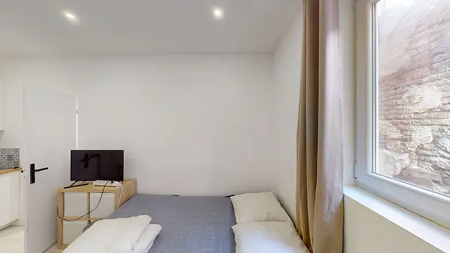 Ce studio situé au rez-de-chaussée propose un espace de vie moderne, optimisé et décoré avec goût.