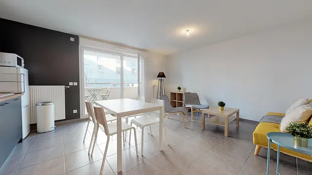 OQORO vous propose ce très beau et grand T2 meublé de 45 m² situé au 1er étage d’une résidence neuve au 5 rue de la Tase à Vaulx en Velin.
